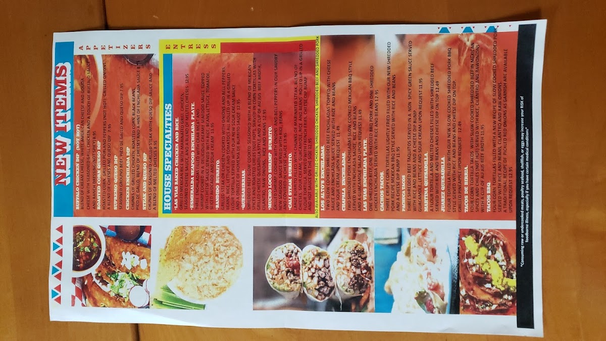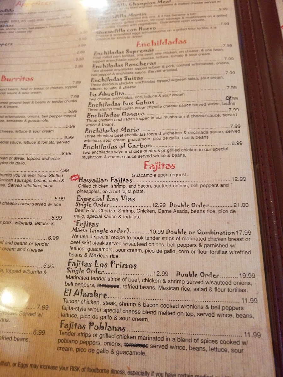 A large flour tortilla stuffed with bell peppers, onions, tomatoes and your choice of grilled chicken, beef or shrimp.